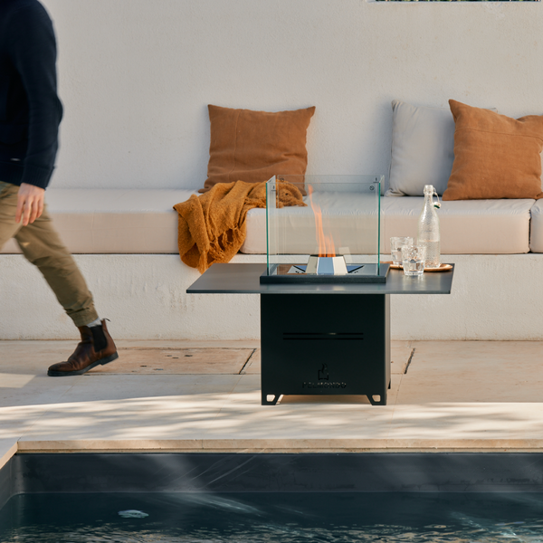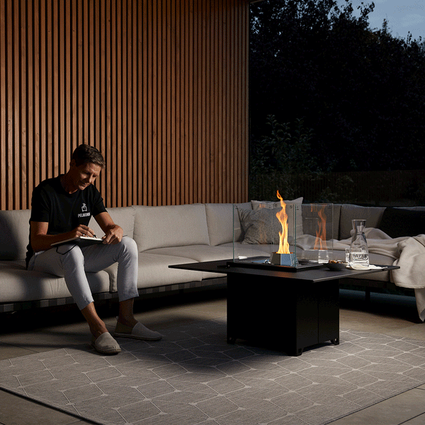 Cube ist zeitlos elegant, ganzjährig nutzbar und punktet mit vielen Kombinationsmöglichkeiten. Die mit Pellets beheizbare Feuerstelle ist ein Blickfang im Outdoor-Bereich und fasziniert mit ihrem einzigartigen Flammenspiel. Mit Tischplatten kann Cube in ein modernes Terrassenmöbel verwandelt werden, das ausreichend Platz für Getränke und Snacks bietet. Im Garten, auf der Terrasse oder beim Pool – Cube ist der Mittelpunkt an gemütlichen Abenden.