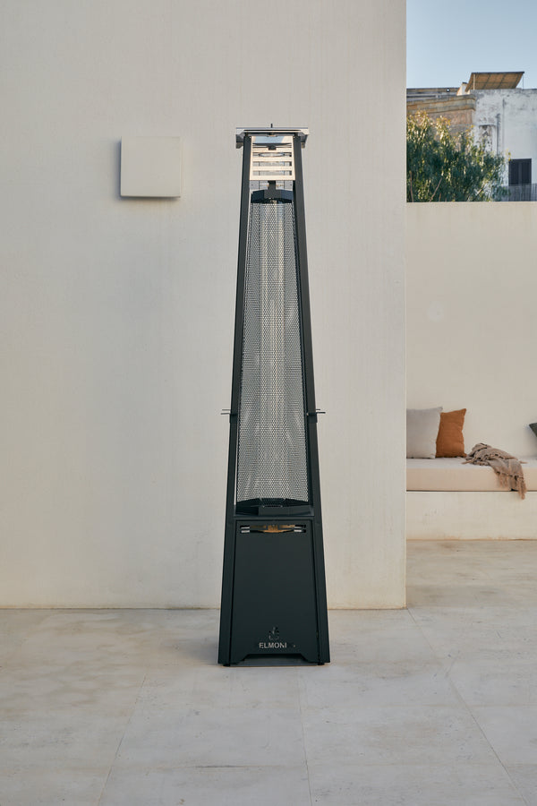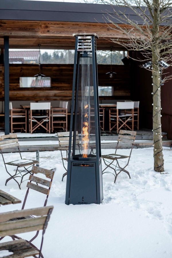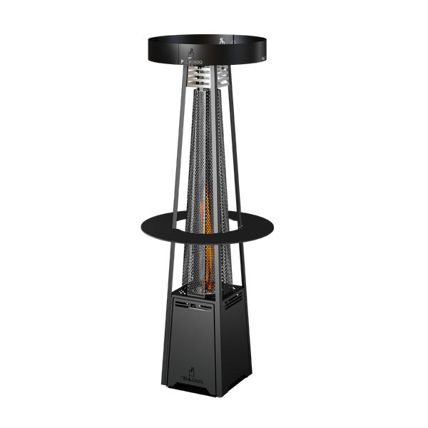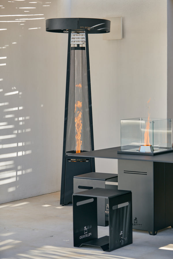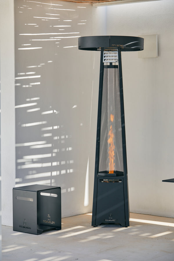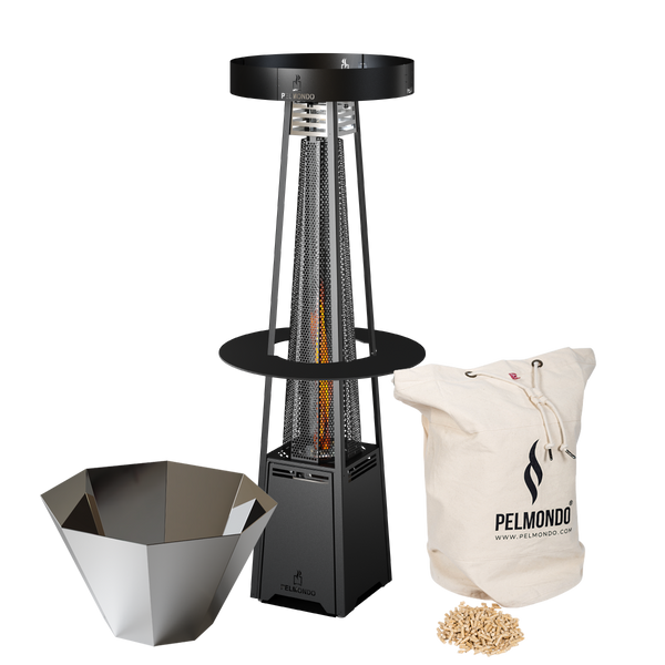 Tower besticht mit seiner stilvollen Eleganz und gleichmäßig abgegebenen Wärme. Ob im Sommer oder Winter: Mit seinem hohen Flammenspiel ist die Feuersäule ein absoluter Blickfang im Outdoorbereich. Die Feuerstelle ist aufgrund ihres Betriebs mit Pellets besonders umweltfreundlich. Da wie bei allen Pelmondo-Produkten hochwertigste Materialien wie pulverbeschichteter Stahl zum Einsatz kommen, ist der Tower besonders langlebig und ganzjährig verwendbar. Für ausreichend Abstellfläche kann die Feuersäule mit einer Tischplatte ausgestattet werden.