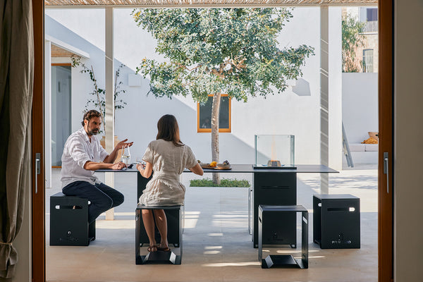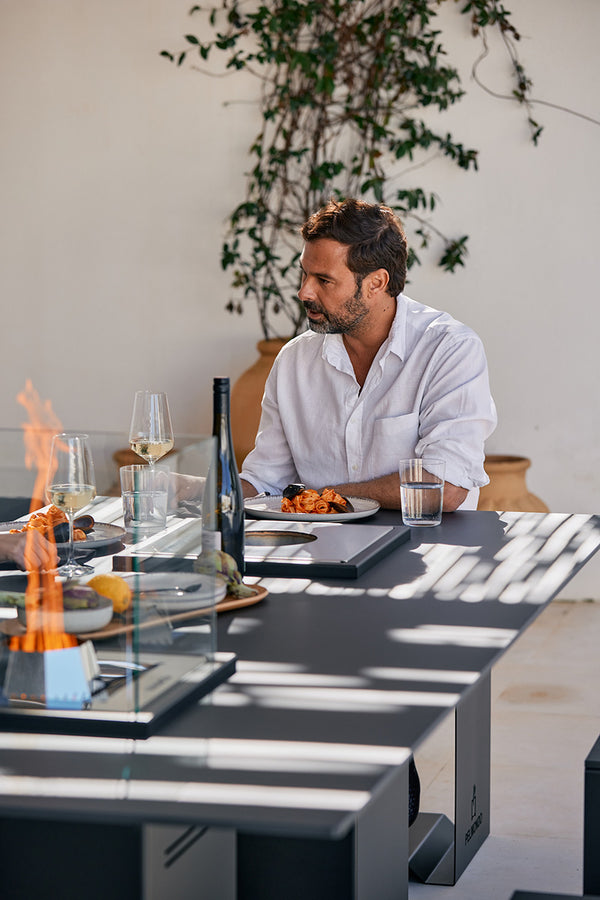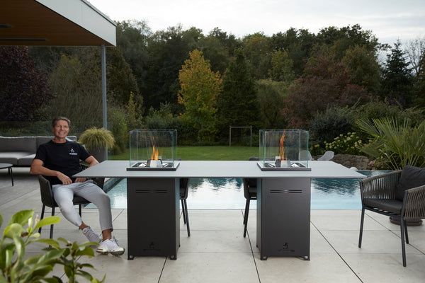 Mit dem TwinTable tanzen die Flammen um die Wette. Nachhaltig und rauchfrei mit Holzpellets betrieben, ist die Feuerstelle der Inbegriff von Gemütlichkeit. Zugleich sorgt TwinTable für ein edles Ambiente zu jeder Jahreszeit. Die integrierbare Platte verwandelt die Feuerstelle mit ihren in der Mitte platzierten Brennereinsätzen in einen unvergleichlichen Feuertisch.